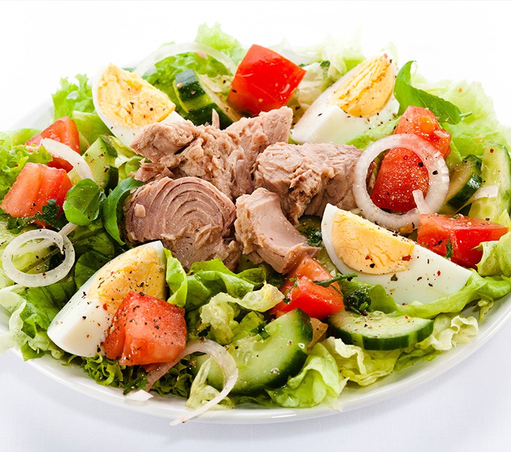 Salade Encas(Salade, tomates, oignons frits, poulet, champignons, œufs)
